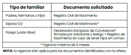 - Documento que certifique el parentesco según aplique: